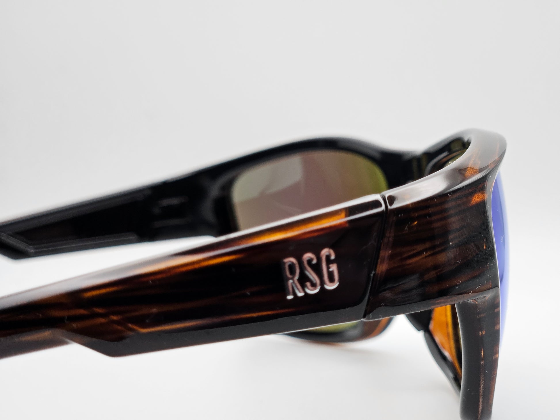 True Polarized, 100% UV protection, light weight ( less than 1 oz), sport sunglasses. These are truly stylish, light weight, nose/ear grips.